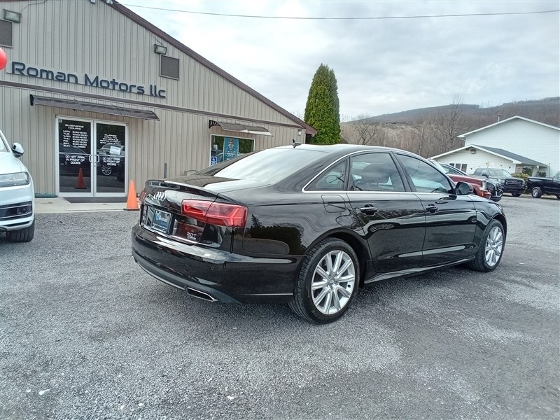 Experience refined performance and sophistication with this 2016 Audi A6 Premium Plus in sleek Black. Powered by a 2L 4-cylinder turbocharged engine paired with an 8-speed automatic transmission, it delivers an exceptional blend of power and efficiency. Enjoy comfort and convenience with features like leather seating, heated front seats, dual power seats, dual-zone automatic climate control, and a power sun/moon roof. Stay connected with Bluetooth, integrated phone, USB and AUX ports, and a premium sound system. Safety comes standard with anti-lock brakes, traction control, multiple airbags, a backup camera, and sensors. Additional highlights include remote start, keyless entry, power locks and windows, and stylish alloy wheels. Visit ROMAN MOTORS LLC or call 570-489-3434 to schedule a test drive and discover why the Audi A6 remains a benchmark in luxury sedans.